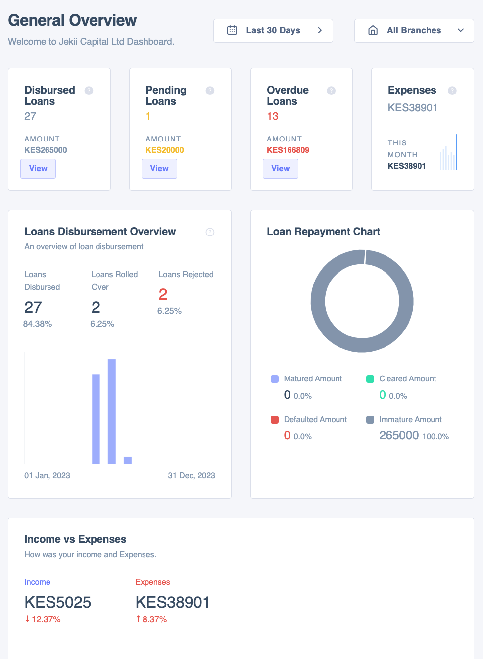 Gain valuable insights into your loan disbursements and repayments with Mdeni's reporting features.